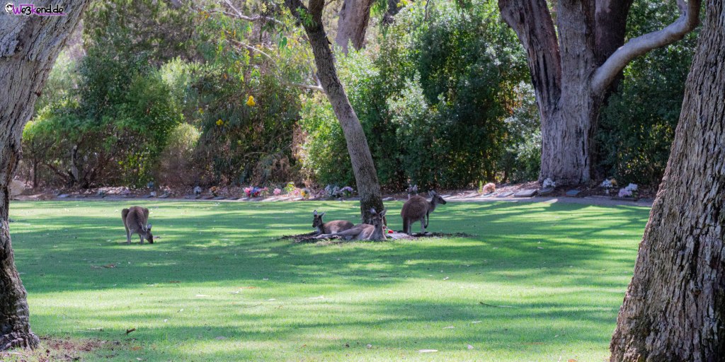 In Perth gibt es ein Memorial Park, wo sich Kängurus eingenistet haben. Das ist der Pinnaroo Valley Memorial Park, der dadurch eine Touristenattraktion geworden ist.